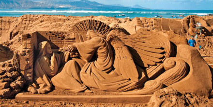 Imponerende sandskulpturer på stranden