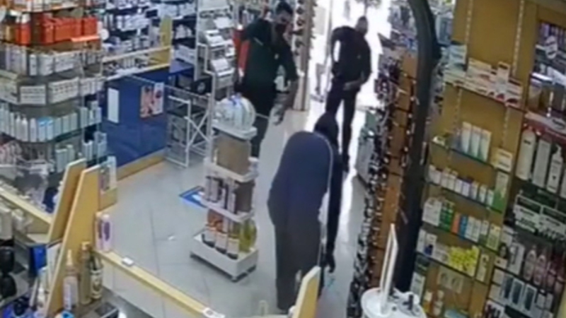 En 46-årig bevæbnet mand kom pludselig ind på apoteket, og de to unge kvinder gjort straks som han sagde, da han truede med en stav og en pistol og krævede alle pengene.