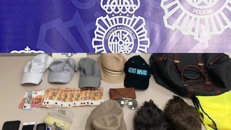 Politiet beslaglagde adskillige kasketter og hatte, to parykker, et værktøj til at åbne køretøjer samt lidt over 1.000 euro, flere mobiltelefoner og rejsetasker.