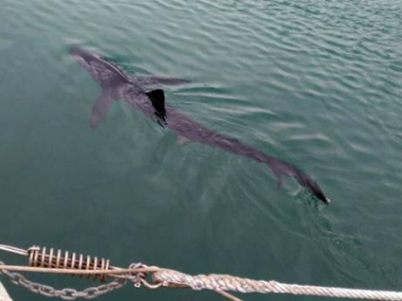 Hajer, der svømmer tæt på de spanske kyster, forekommer af og til, men når det frygtede havdyr pludselig befinder sig helt inde i havnen, er det en anden sag.