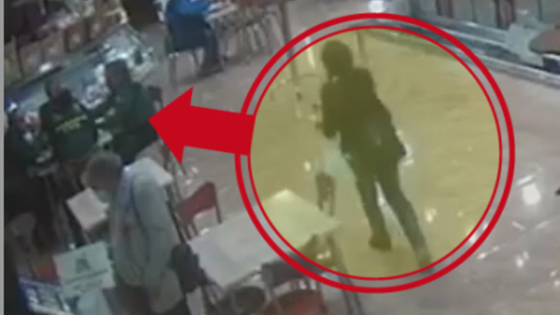 Dramaet opstod i baren i et serviceområde nær Albacetes provinshovedstad, hvor betjentene sad og drak en kop kaffe. Da kvinden henvendte sig med en sandwich i hånden, var hun helt ude af stand til at tale og viste tydelige tegn på, at han druknede.
