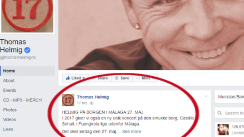 Og nu har Thomas Helmig netop afsløret på sin facebookside, at han vender tilbage og givet koncert. Det sker helt præcis den 27. maj på den Castillo Sohail i Fuengirola lige uden for Málaga.