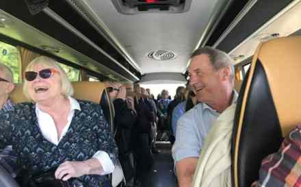 På vej hjem i bussen var stemningen mindst lige så god som på udturen...