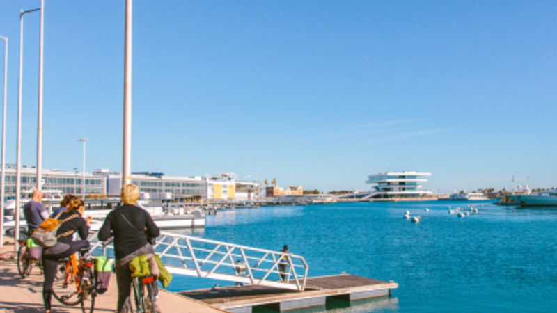 Turist redder et barn og bedstefar fra at drukne i havnen i Valencia.