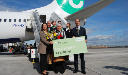 Rekorden blev slået søndag med ankomsten af et Transavia-fly fra Eindhoven. Lufthavnsdirektøren, Laura Navarro, tog imod den overraskede passager for foden af flyet.