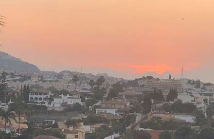 Solopgang ved Fuengirola-Mijas fra Kathrines morgenture. Torsdag ændrede morgendisen alt til pastelfarver