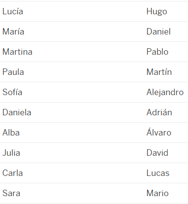 Lucía og Hugo er ikke nye navne, men efter at have været umoderne i en periode har de nu igen sat sig på tronen er er blevet de to mest populære navne blandt nyfødte. Det oplyser Statistisk Institut, INE.