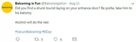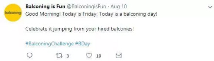 En Twitter-konto med navnet ‘Balconing is fun’ dukkede også op. I starten tiltrak den mange følgere, men er allerede blevet suspenderet igen af det sociale netværk.