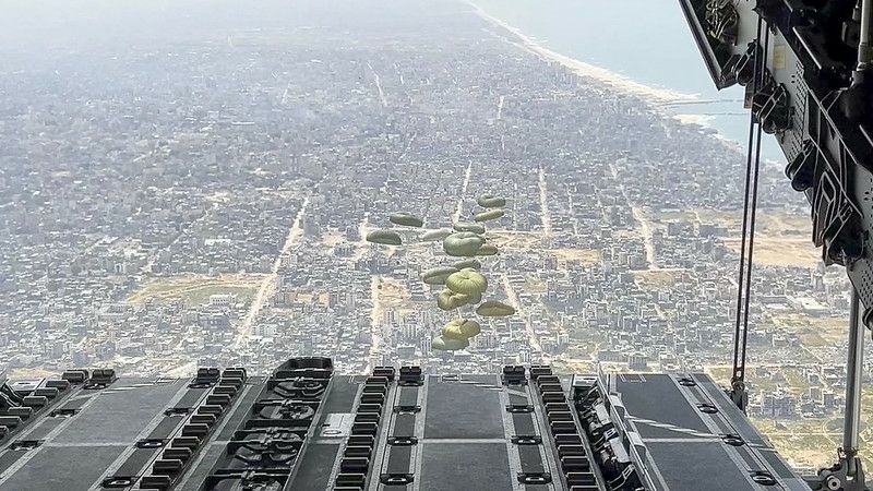 To militærfly har transporteret 26 ton mad til befolkningen i Gaza og kastet det ned i den nordlige del af Gazastriben.
