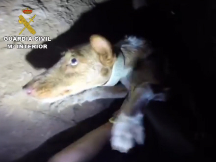 Civil Guard reddede lørdag en hund fra en smal kløft i Turre, Almería.
