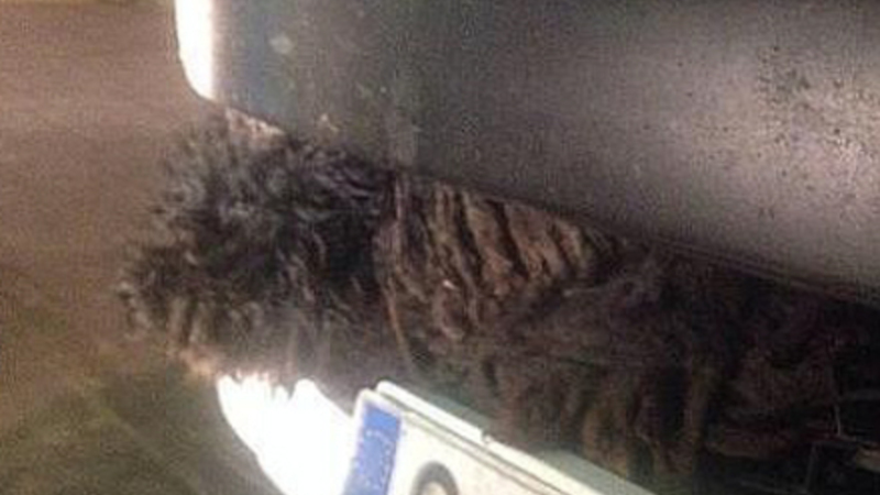 KÆLEDYR: Vandhund blev slæbt næsten 200 kilometer under en bil. Den overlevede på mirakuløs vis - men ikke uden skrammer.