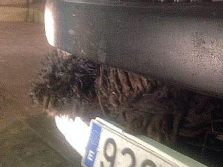 Moisés – som er navnet på den hårdføre hund af racen 'Perro de Agua' – blev påkørt i Sevilla-forstadskommunen Osuna. Den blev slynget ind under kofangeren, og her sad den fast, indtil føreren blev stoppet af politiet i Mijas, Málaga.
