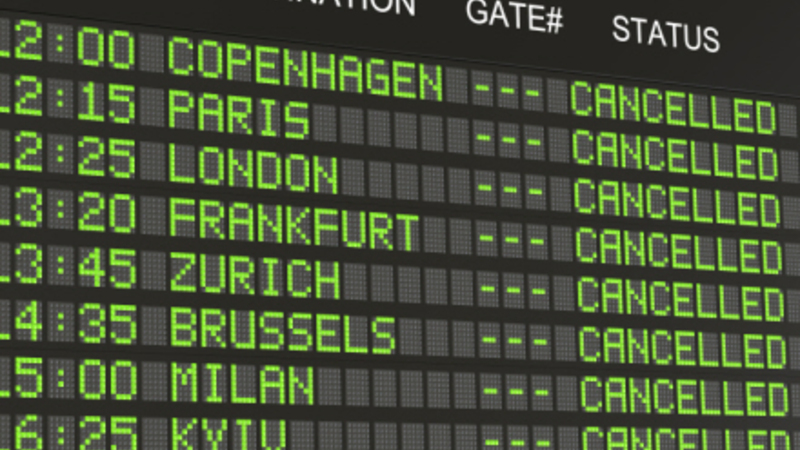 I går betød det, at Ryanair måtte aflyse afgange fra Billund til Alicante og Girona, og at en SAS afgang fra Kastrup til Málaga tog hele fem timer.