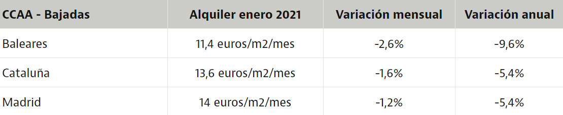Men på trods af disse fald, er de sammen med San Sebastián fortsat de regionshovedstæder, hvor det er klart dyrest at leje en bolig.