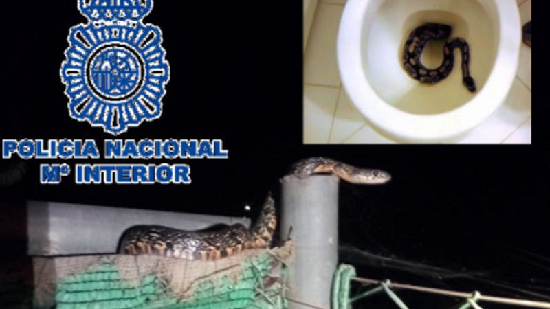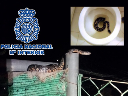 Policía National har fanget en lang slange i Málaga, og et andet sted i landet fik en kvinde sig en overraskelse, da hun skulle på toilettet.