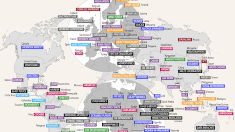 Senest har han lavet en oversigt over, hvad verdens lande er bedst til. Fordi “hvert land er bedst til et eller andet”, som er kortets undertitel.