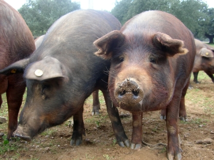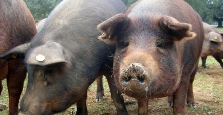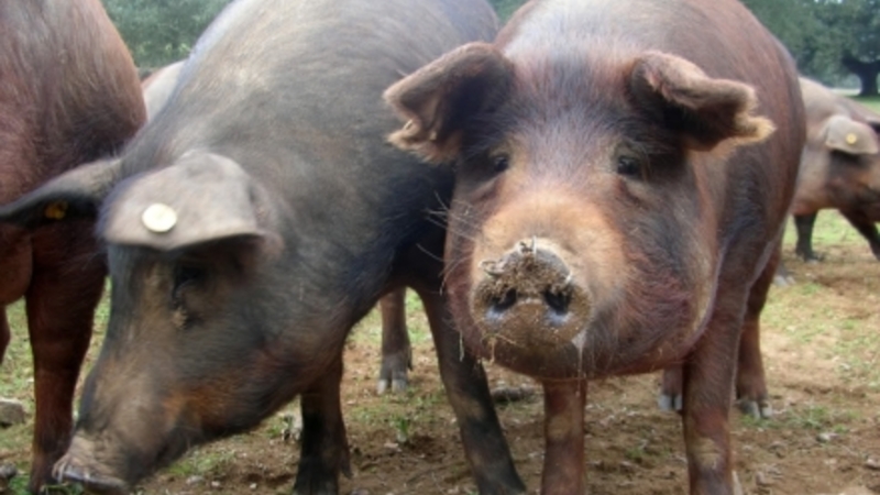 “Jeg (længst til højre) har levet et okay liv på mine sorte fødder i 16 måneder og vejer cirka 160 kilo efter at have spist mange dejlige bær og nødder. Alligevel synes jeg, det er lidt groft, at min ejer bagefter sælger mine skinker for omkring 500 kroner pr. kilo. Hvad synes du?”