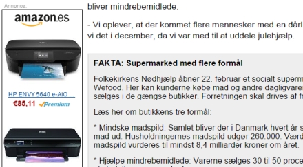 Men. Når jeg de følgende dage smuttede ind på ekstrabladet.dk for at tjekke nyheder, poppede der lige annoncer op for selvsamme printer fra amazon.es…
