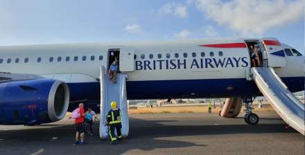 Fly fra British Airways, en Airbus A321, fløj i går fra London Heathrow med en halv times forsinkelse og naturligvis med mange glade ferierejsende gæster ombord.