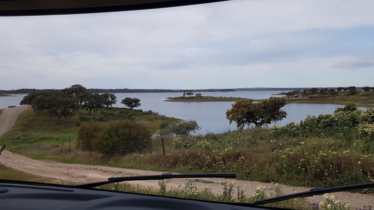 På landevejen N-256, hvor vi kører over en af de store broer i søen mod Monsaraz.