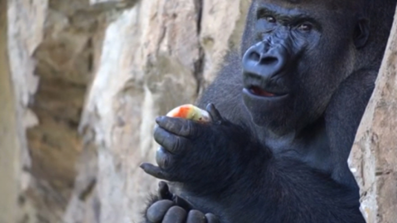 Alle grøntsager og frugt bliver nemlig frosset i en balje vand, så det bliver forvandlet til store is. Det er en årlig sommerbegivenhed, der ikke kun er en appetitlig overraskelse for dyrene, men også ret sjovt at overvære for de besøgende.