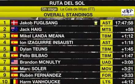 SPORT: For anden gang vinder Jacob Fuglsang etapeløbet Vuelta de Andalucía - med overbevisende føring.