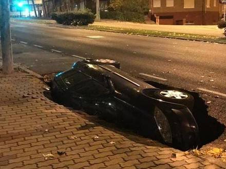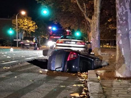 I sidste uge røg en Citroën med snuden først i et af slagsen, da vejen pludselig forsvandt under en bilist i Madrid. Læs mere her