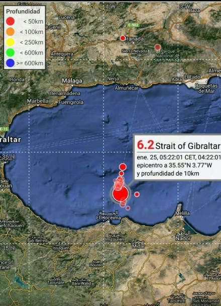 Et jordskælv på 6,2 - 62 kilometer nord for den marokkanske by El Hoceima - kunne mærkes i store dele af Andalusien. Både i Málaga, Granada, Sevilla, Jaén og ikke mindst i Melilla i Nordafrika, hvor der skete skader.