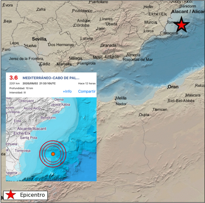 Ifølge det nationale geografiske institut, IGN, målte skælvet 3,6 og havde epicenter ud for Cabo de Palos kyst, og det kunne mærkes adskillige steder i Alicante-provinsen.