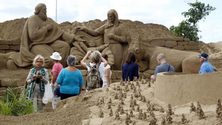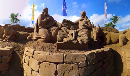 Julekrybbe i sand er så flot, at man skulle tro, at det hele var hugget i sten - i hvert fald ligner det ikke noget så porøst som sand.