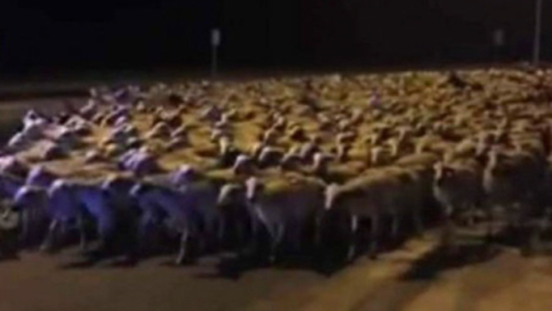 Kæmpe fåreflok invaderer by