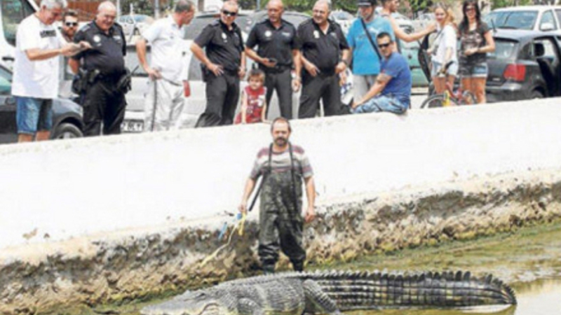 Gustavo er fem meter lang og vejer 90 kilo, og han fik lov til at blive i flodlejet i 24 timer, før han blev flyttet et andet sted hen.