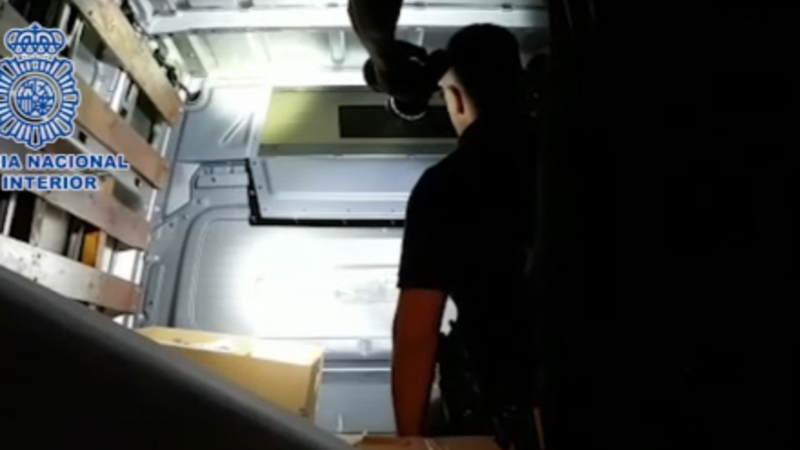 Policía Nacional har beslaglagt 34 kilo methamfetamin i Fuengirola, der var skjult i et falsk loft i en varevogn.