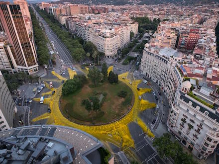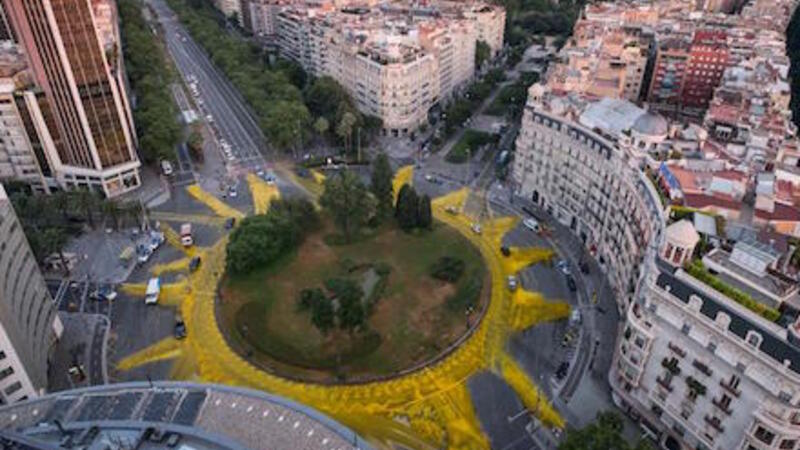 Aktivisterne havde malet en gigantisk sol på Plaza Francesc Maciá.