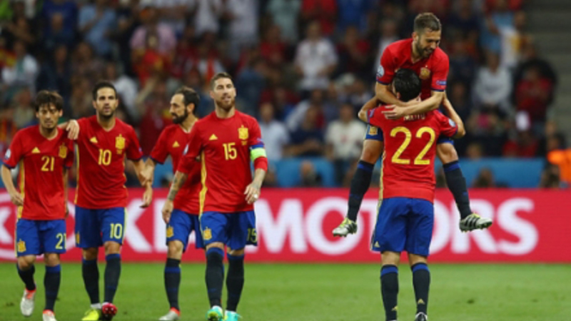 Holdet viste sprudlende fodboldspil, og allerede efter ti minutter var Alvaro Morata tæt på at bringe storfavoritten i front, men hans hovedstød prellede af på stolpen.