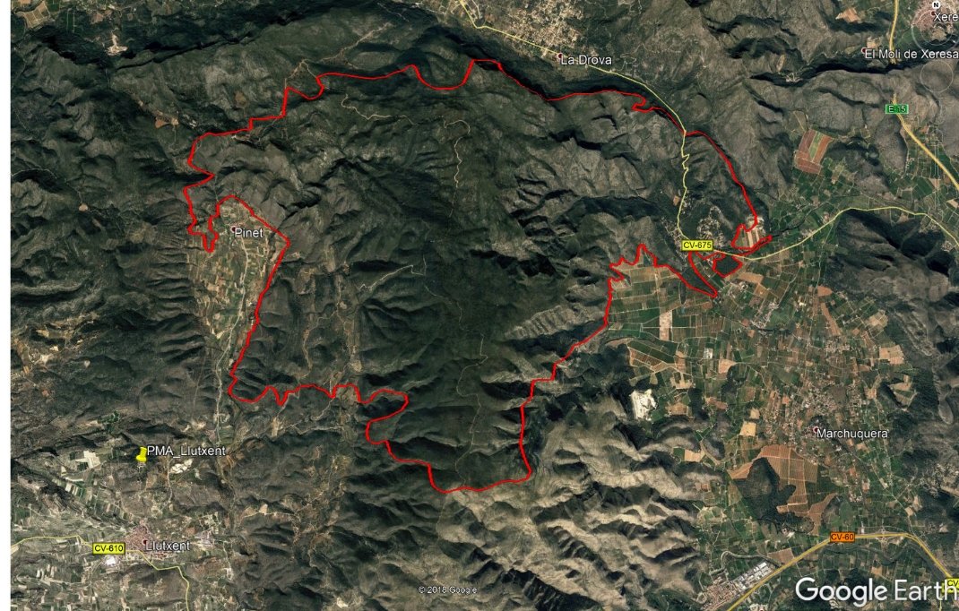 I går var Llutxent-branden opgjort til at have berørt 3.003 hektar, og selvom den er stabiliseret, betyder det jo langt fra slukket.