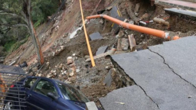 To personer reddede på mirakuløs vil livet, da dele af en vej i villakvarteret Cerrado de Calderón i det østlige Málaga pludselig styrtede sammen.