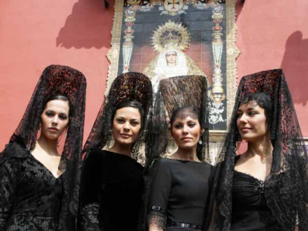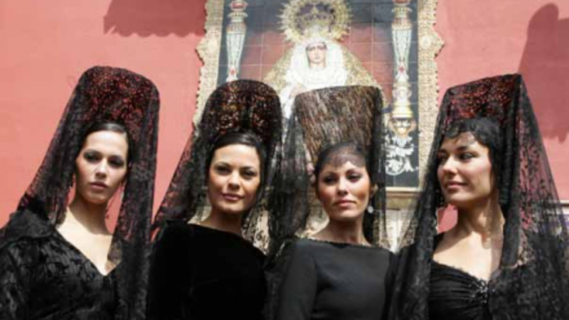 Mantilla-damerne er traditionelt klædt i sort og ses ofter under semana santa, bryllupper og ved tyrefægtninger.