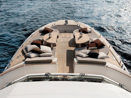 Den luksuriøse Monte Carlo-yacht er blevet døbt Beethoven og er lavet af den franske virksomhed Beneteau i Montefalcone i Italien. Det er en af de bedst-sælgende modeller.