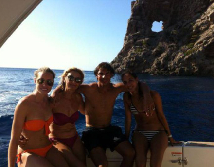 Nadal med sin mor (to fra venstre) og kæreste (th)