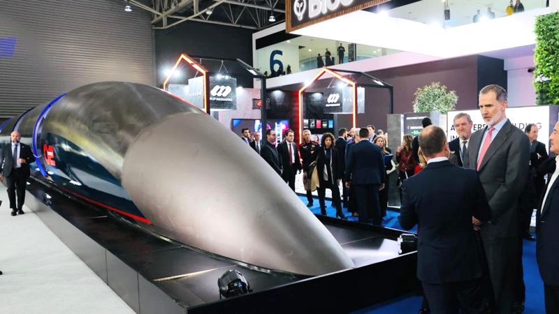 Kong Felipe VI ser på modellen af Hyperloop - det tog, der kan forbinde Madrid og Barcelona på 30 minutter.