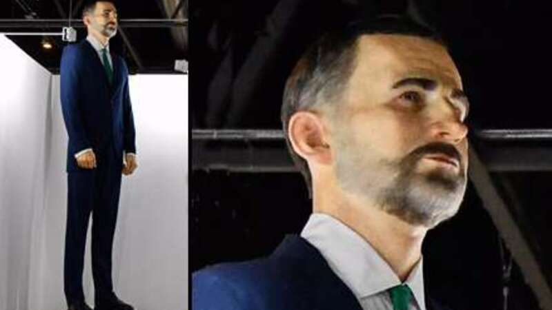 KUNST & KONGELIGE: En 4,5 meter høj skulptur af Kong Felipe VI er netop nu til salg på ARCO - messen for moderne kunst i Madrid. Men der stilles et særligt krav til køberen...