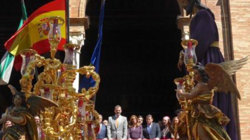 Don Felipe ankom i nærheden til pladsen omkring klokken 14:30, hvor han hilste på borgerne af Sevilla, der havde samlet sig på den centrale plads. Her blev kongen modtaget af ærkebiskoppen af Sevilla, Juan José Asenjo, formanden for regionsrådet i Andalusien, Susana Díaz, regeringsdelegeret i Andalusien, Antonio Sanz, og borgmesteren i Sevilla, Juan Ignacio Zoido.