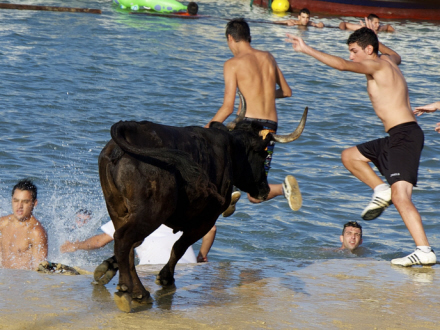 Hvert år afholdes der byfest i den østspanske by Denía i Alicante. Festen hedder “Bous a la Mar”, og det betyder bogstaveligt talt: tyrene i havet.