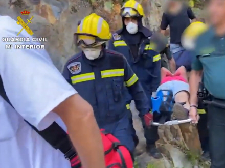 Ifølge Civil Guard var nedstigningen på de klippefyldte og stejle stier endnu mere kompliceret, da det var nødvendigt at bære kvinden. Efter noget tid fik de assistance fra et hold brandmænd fra Coria, Cáceres.