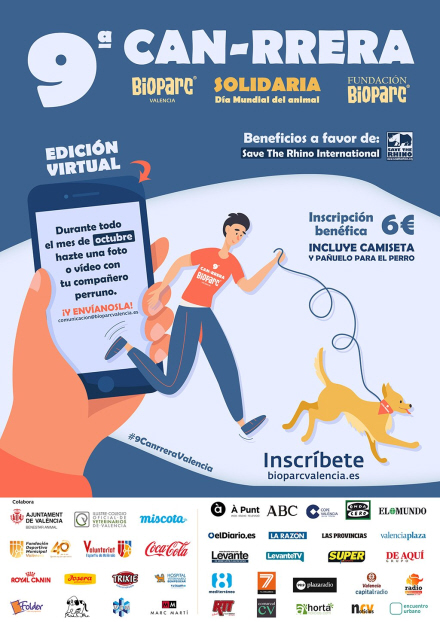 Deltagerne opfordres til at dele et billede eller en video med deres hund på sociale netværk under hashtagget #9CanrreraValencia og send desuden billedet for at komme med i den 9. CAN-RRERA-video. Send billeder til: comunicacion@bioparcvalencia.es