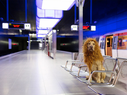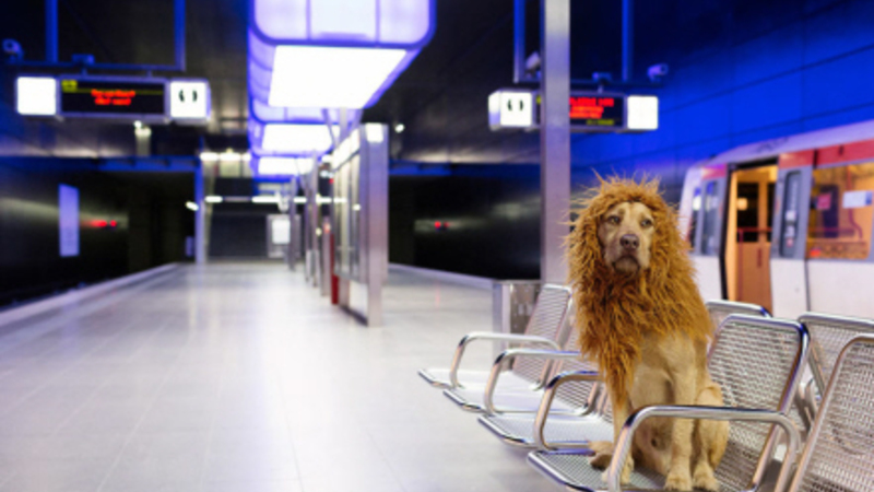 Hun syntes fra starten, at hunden lignede en løve med sin lyse øjne og lysebrune pels. Så hun fiksede en paryk og begyndte at tage billeder af “løven” fra hendes faroritsteder i hjembyen Hamburg.