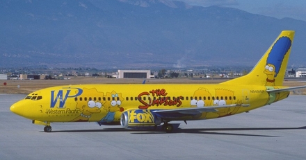Den satiriske parodi på den amerikanske middelklasse, som den gengives af familien Simpson, kom til verden i 1989. Flyet fra Western Pacific blev dekoreret i 1995