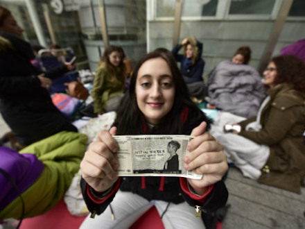 - Det er hårdt natten med kulden, men jeg er efterhånden ved at vænne mig til det, siger 20-årige Andrea Gil, der er rejst hele vejen fra De Kanariske Øer for at lægge i kø.
