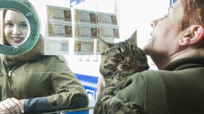 Irene bekræfter, at katten er vild med at lege med lotterisedlerne, og at den af og til også ligefrem flirter med yndlingskunderne.